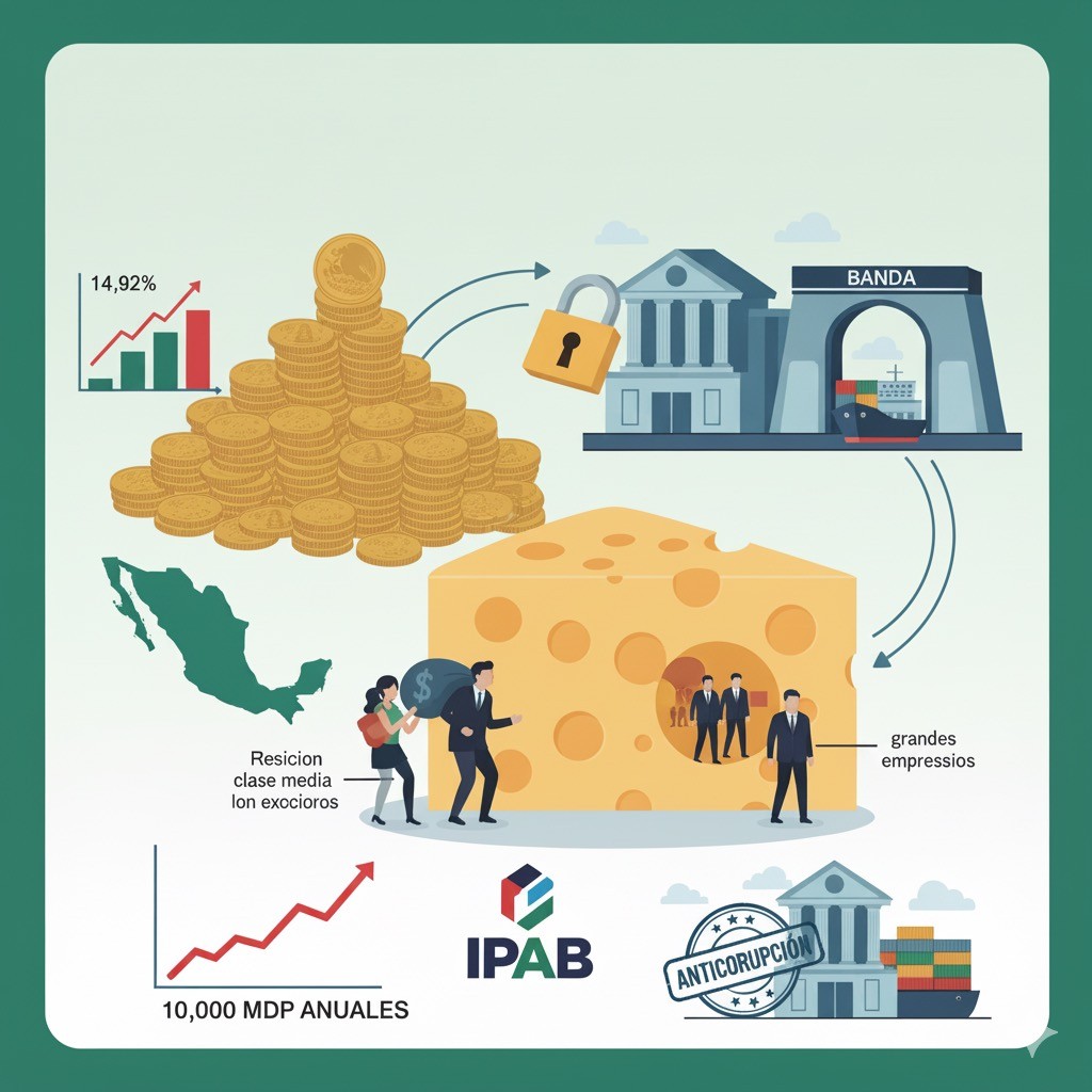 Afortunadamente, nuestra presidenta, aunque continúa negándose a una reforma fiscal, ya empezó a dar pasos en esa dirección. Hablo, de la iniciativa presidencial para que los bancos mexicanos ya no puedan deducir los impuestos a los aportes que realicen al pago de deuda al Instituto para la Protección al Ahorro Bancario (IPAB antes FOBAPROA), con lo cual prevé aumentará la captación tributaria en 10,000 millones de pesos anuales.