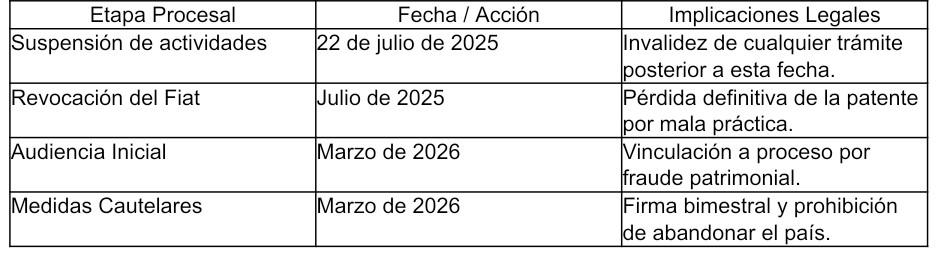 La investigación por el momento ha determinado que el notario violó sistemáticamente el artículo 11 de la Ley del Notariado al no solicitar los certificados de gravamen indispensables antes de cualquier protocolización. Este patrón de conducta sugiere una posible colusión con estafadores inmobiliarios que buscaban despojar a las víctimas de sus ahorros mediante la apariencia de legalidad que otorga un sello notarial.