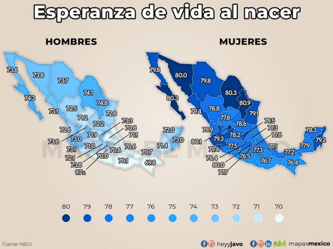 En 2026, la esperanza de vida promedio en México alcanzó los 75.5 años. La brecha regional persiste: nacer en los estados del norte o en la capital puede representar hasta 5 años más de vida en comparación con las entidades del sur.