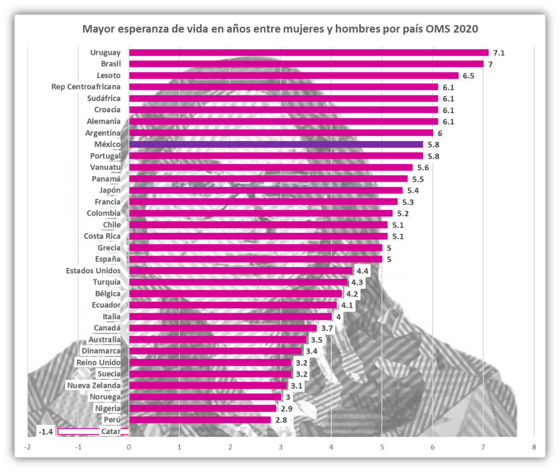 Diferencia en Aguascalientes de 6.3 años: de 80.1 ellas VS contra 73.8 de ellos.