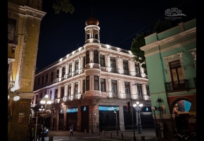 En el corazón del zócalo poblano, el edificio del Antiguo Círculo Español emerge como un vestigio del tiempo y de la memoria arquitectónica. Su fachada rosada, suavemente iluminada, parece contener los ecos de una historia que se resiste a apagarse. Bajo la tenue luz nocturna, la joya arquitectónica adquiere un aire de solemnidad, Custodia los secretos de la época en la que la elegancia era permanente.