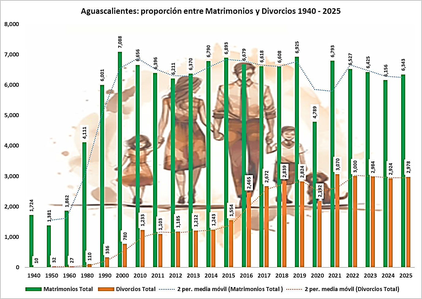 Los números hablan: el promedio mensual de 2 divorcios para el año 1960, pasó a ser el promedio diario en el 2000. El promedio mensual de 28 divorcios de 1990, pasó a ser de 248 mensuales en el 2025.