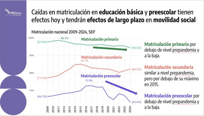 De acuerdo con el Instituto Mexicano para la Competitividad, A. C. los estudiantes en México presentan rezagos en competencias importantes. En la educación básica, el porcentaje de aciertos en pruebas diagnósticas de matemáticas es de 57% en 2° grado. En 5° grado, cuando deberían consolidar más habilidades, disminuye a 32%.
