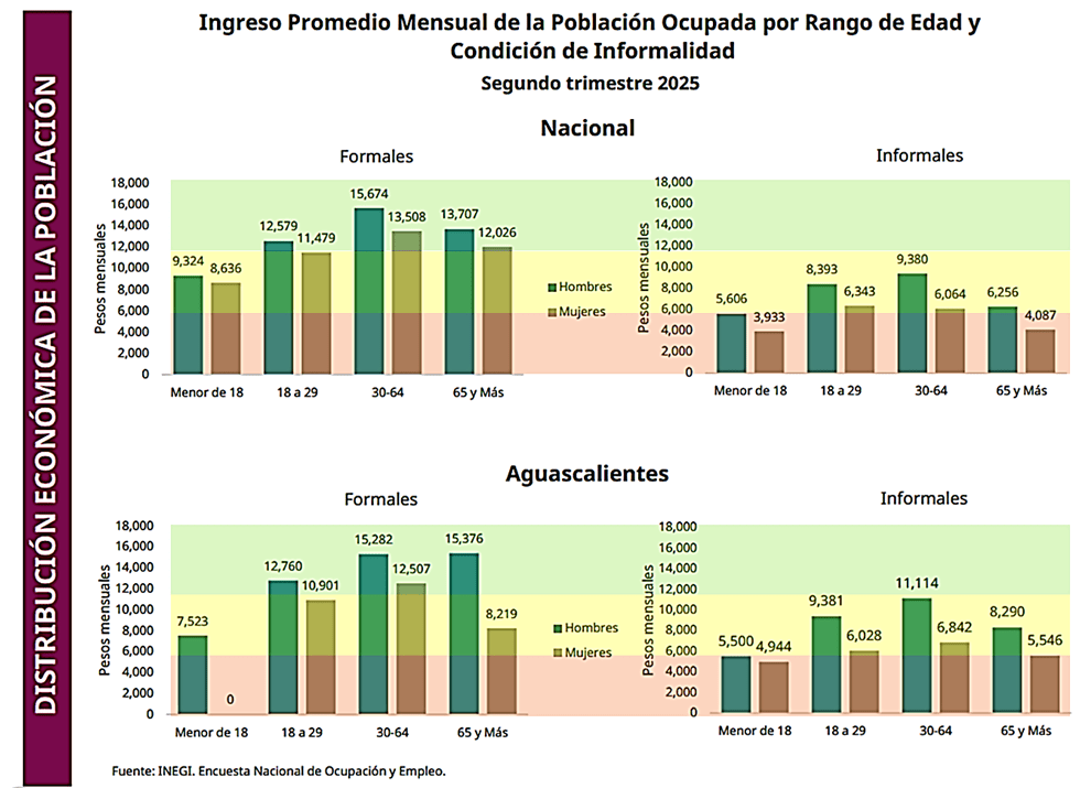 En enero, un hogar mexicano de cuatro integrantes requiere en promedio 19,372 pesos mensuales para cubrir sus necesidades esenciales. Las cifras más altas en la historia del país, según el INEGI. ¿Qué implicaciones tienen estos datos para las familias mexicanas en la actualidad? Si apreciamos las cifras de ingresos por trabajo, tanto las que se pagan en el mercado formal laboral como las devengadas en la informalidad por edad y sexo nos damos cuenta que las familias mexicanas como las aguascalentenses necesitan 2.3 perceptores por hogar.