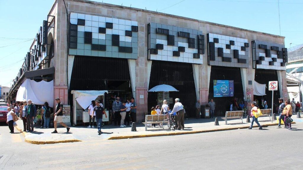 En el lado poniente, hacia lo que hoy es la calle 5 de mayo, había un espacio grande que ocupaban unas pilas llenas de agua, que usaban los locatarios para el aseo de sus mercancías, o los vecinos del mercado para proveerse del líquido, dado que por entonces la ciudad no contaba con red de agua potable. Ese espacio era también aprovechado para que los carreteros subieran o descargaran su mercancía. Poco a poco este sitio fue ganado por comerciantes que con materiales muy distintos a la sólida cantera, fueron construyendo tendajones usando láminas, malla, cartón y más. Ahí se vendían mercancías disímbolas, como jaulas de madera y alambre para pájaros, escobas, trapeadores, tinas, bateas, y en general, todo lo que no era comestible, que se vendían en el interior del mercado.